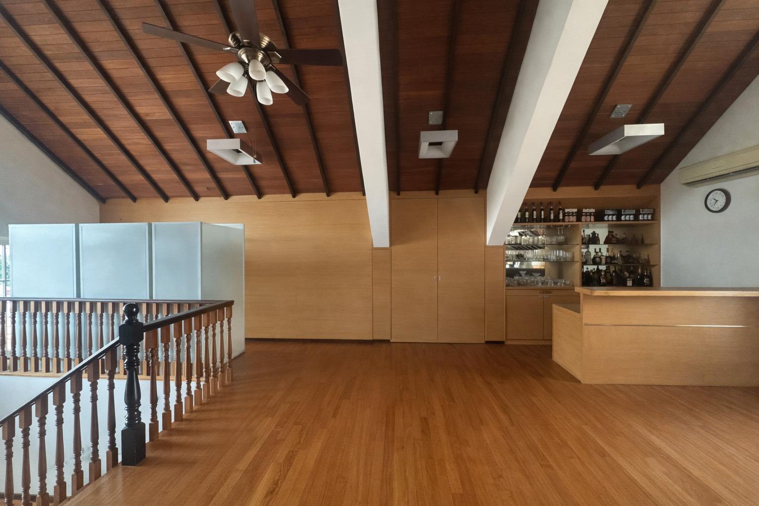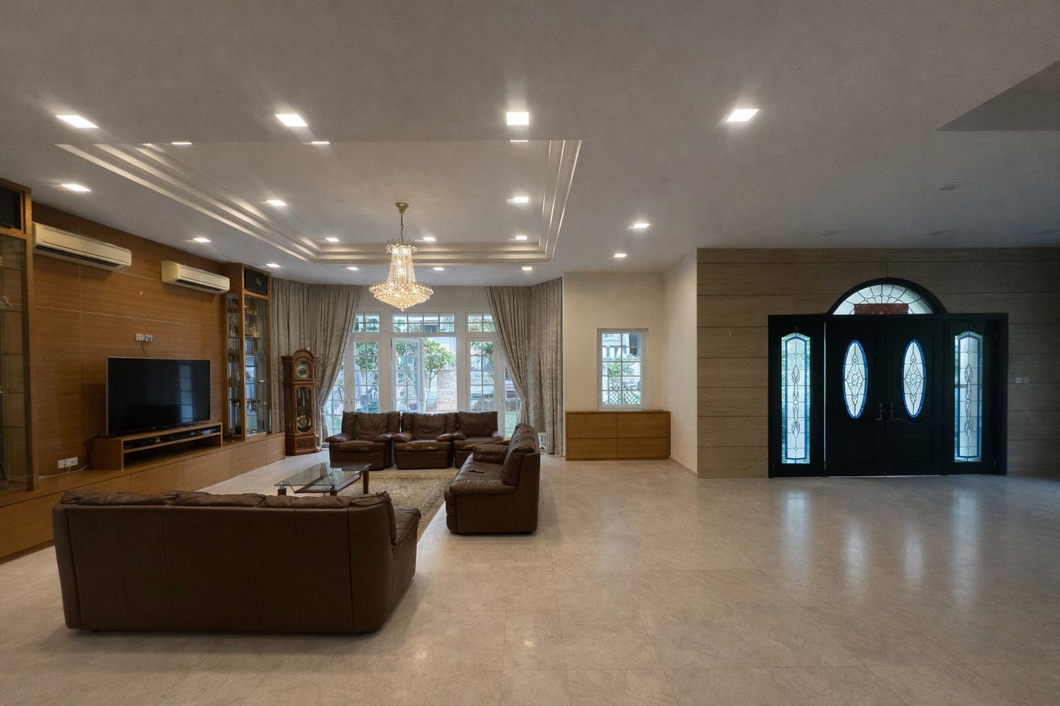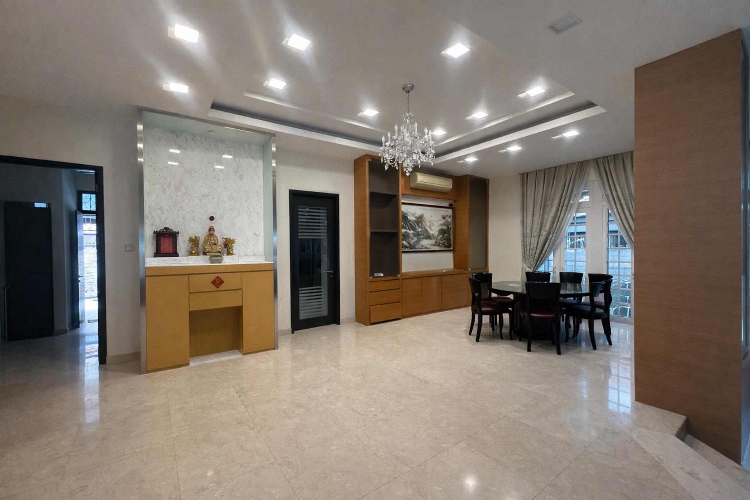 This is a freehold property, with 2 story and attic, built around Year 2008. Master Plan (2019) Zoning is under 2 Story Bungalow, Residential. It is sitting on 6,479 sqft of land and it has a wide frontage of 18m with a very regular rectangular plot shape. It comes with a wide driveway that can easily park 3 to 4 cars. A large plot of turfing in front of the house to be a perfect lawn area. Surrounding the perimeter of the house are rows of varies fruit trees and plants, with a large koi pond attached to an elaborate water feature.